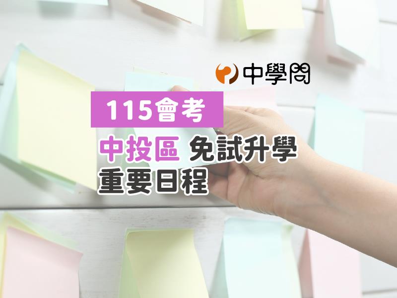 115學年度國中教育會考的成績單將於115年6月5日寄出,中投區的考生一定要留意幾個重要報名日期,包括:「中投區免試入學」(大免)開放個人序位查詢填志願、報名等日期,一定先了解自己的序位區間和序位比率,才能更精準地填寫志願。若有變更就學區的需求,也請在期限前辦理。現將115會考中投區重要的升學日程整理如下,請勿忘記,順利完成升學最後一哩路。